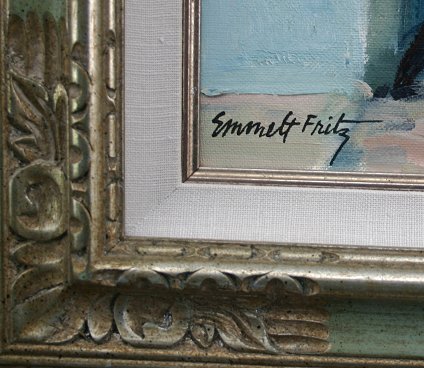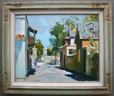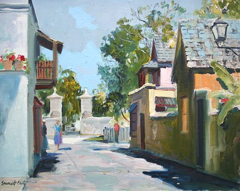 FRITZ, Emmett, (American, 1917-1975): St Augustine Street Scene, O/CB, 16'' x 20'', signed LL, carved frame, 21 1/2'' x 25 1/2''. Acquired directly from the artist by consignor. Est. $3000/5000**