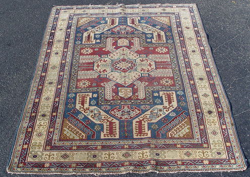 SEMI-ANTIQUE HAND TIED CAUCASIAN RUG: Approx. 4'3'' X 5'3'' Est. $400/600**