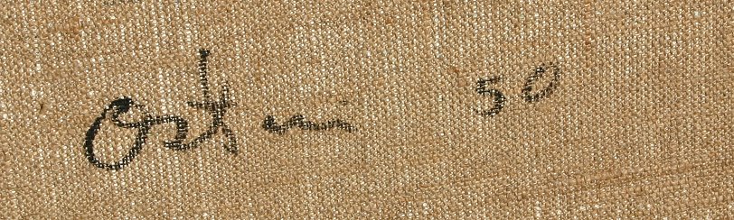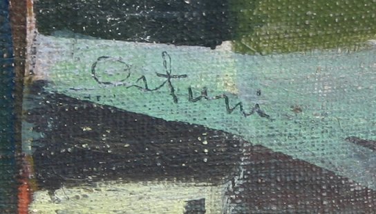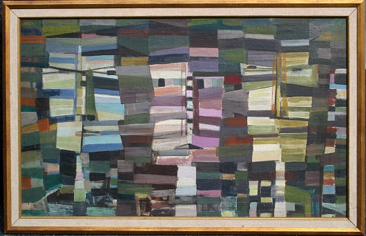 OSTUNI, Peter, (American, 1908-1992): ''Suspicion'', O/C, 22'' x 36'', signed LR, titled and signed verso, dated '50, framed, 25'' x 39''.