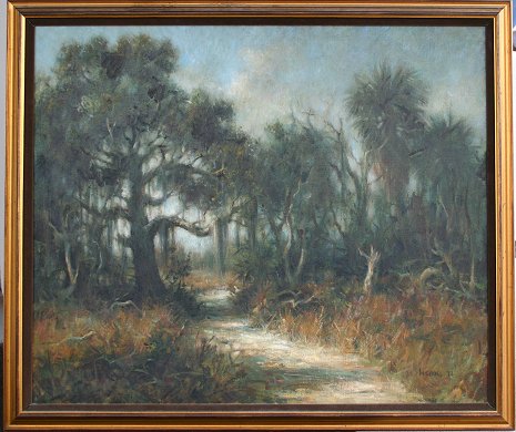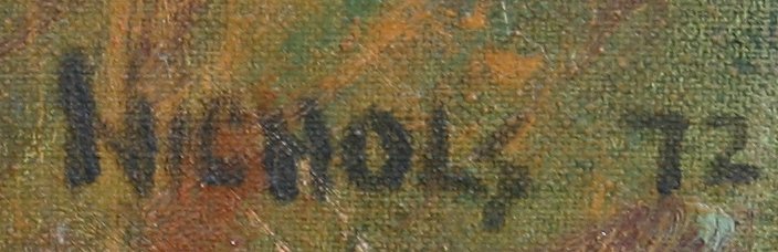 NICHOLS, Roy, (American, 20th C.): Florida Landscape, O/C, 30'' x 36'', signed LR and dated '72, wood frame, 34'' x 40'', partial label attached verso, ''February ?***''. Nichols was a talented Sarasota artist known to have taught at the Sarasota Art Club. Est. $500/800**