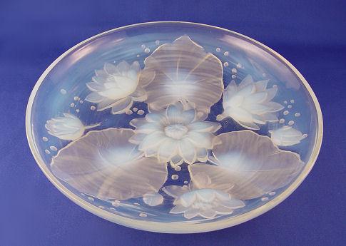 VERLYS ART GLASS IRIDESCENT WATER LILY BOWL: Raised water lily design, 13 3/4'' dia. 2 1/4''h.