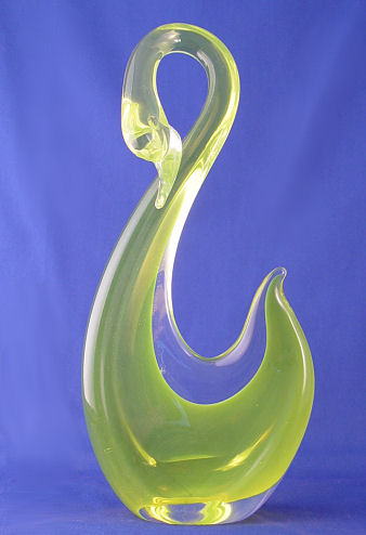 MURANO SOMMERSO SWAN SCULPTURE: Graceful swan in a most vivid yellow, 14 1/2'' h x 7''.
