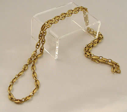 18K GOLD LINK NECKLACE: Alternating textured anchor links with polished single links, 26 inch, acid tests 18k, lobster clasp marked E33 14?, 42 grams.