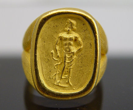 24K GOLD GENTLEMAN'S RING: Bright yellow gold signet style ring, band marked 99.99 R 94 0394, size 8.5, 17 grams.