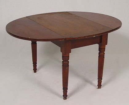 MINIATURE AMERICAN COUNTRY DROP LEAF TABLE: Doll or sample size of the standard kitchen work table. 13 1/2''h. x 19 3/4''w. x 25 1/2'' with leaves in extended position.