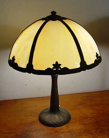 VINTAGE 1920'S CARAMEL SLAG GLASS TABLE LAMP: Double socket pull chains with acorns, lamp is 20''h. shade is 15'' dia.