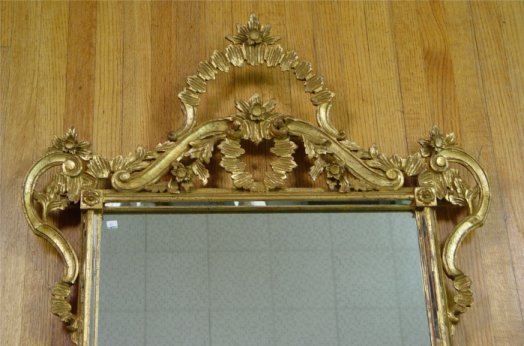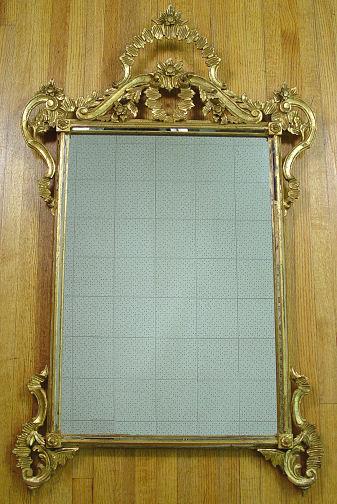 FLORENTINE GILT FRAMED MIRROR: Carved and gilt wood frame with mirror panels framing the looking glass. 56''h. x 35''w. overall. Est. $400/600**