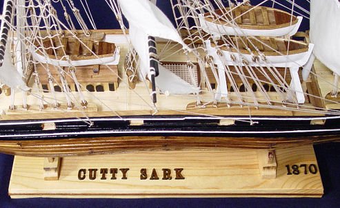 MODEL OF THE 19TH C TALL SHIP, THE ''CUTTY SARK'': Highly detailed, hand crafted, not from a kit, paying great homage to this famous ship. Wood, copper and string construction. Original a tea clipper built in 1869, restored in 1950's and is now on display at dry dock in Greenwich England. This model approx. 29''h, 42'' end to end.