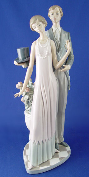 LLADRO ''HIGH SOCIETY'' FIGURE 1430: A 14 1/2'' tall figural group of man and woman. Free of chips, cracks, or repairs.