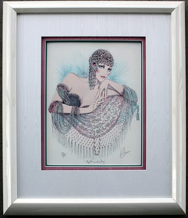 MARY VICKERS 4 PC PRINT LOT: ''UNFORGETTABLE'', 39'' x 37 1/2'' with frame, numbered 25/350; ''FIRE AND ICE'', 40'' x 30'', numbered 67/325; ''ALL ABOUT LOVE'', 51 1/2'' x 39'', numbered 256/325; ''NIGHT AND DAY'', 23'' x 20'', numbered 190/475; ALL MEASUREMENTS ARE WITH CUSTOM FRAMING INCLUDED, ALL PIECES ARE SIGNED AND NUMBERED. From the estate of Marie Masini.