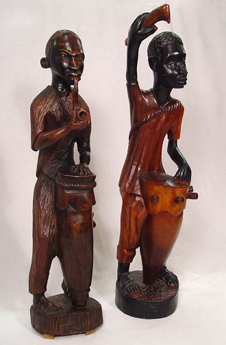 PAIR OF HATIAN WOOD CARVED FIGURES: 40 and 43 1/2''.