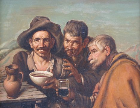 EXCEPTIONAL PAINTING AFTER VELASQUEZ' ''FEAST OF BACCHUS'': O/C/B, 16 1/2'' x 20 1/2'', gilt frame with wear, 22 1/2'' x 26 1/2''.