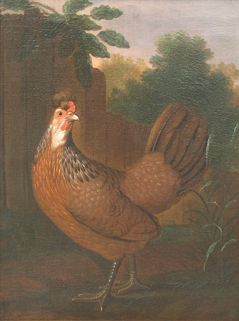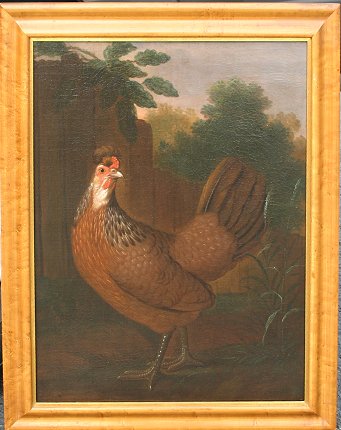 MUSEUM QUALITY OLD MASTER PAINTING OF A ROOSTER: O/C, 25 1/4'' x 19 1/2'', probably Dutch, 18th C., contemporary burlwood frame, 28 3/4'' x 22 3/4''. Est. $5000/8000**