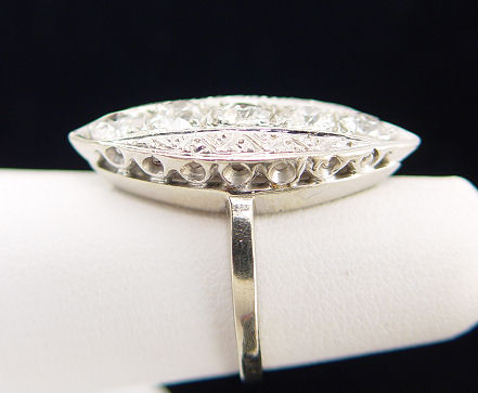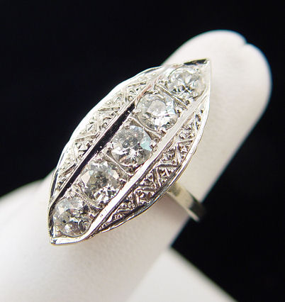 LADY'S 2CTW DIAMOND RING: Custom designed ring of 14k white gold, hand made and set with five diamonds, old European round cut stones, approx. 4.35 x 3.04mm to 4.8 x 2.59mm in size, H-I-J color and SI1-SI2 clarity. Prong set diamonds, shank marked 14k, size 6, 8 grams. Sold with current Florida Diamond Appraisers appraisal, retail replacement value $6500.00.