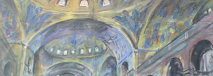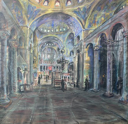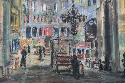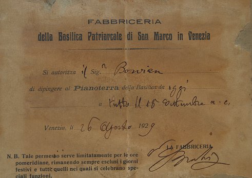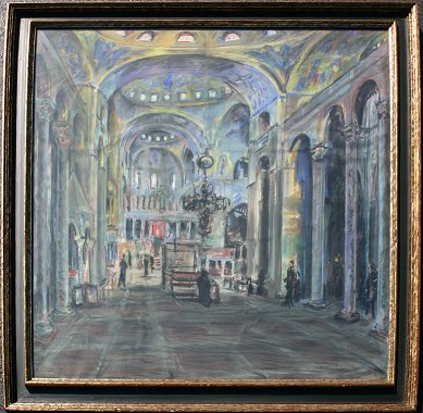 BOWIEN, Erwin, (German, 1899-1972): ''Cathedral of San Marco'', Venice, Italy, Pastel, 33'' x 33'' sight, period gilded and painted frame with wear, 43'' x 43'', signed, dated 1929, label affixed verso indicating artist, title, and date verso, sold with several exhibition catalogs of Bowien's work, written in German. Est. $800/1200**