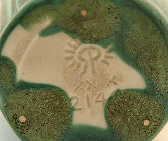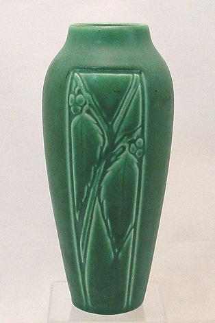 ROOKWOOD POTTERY VASE: Shape 2144, dated 1930, 7 1/2''h., molded leaf and berry design panels in matte green.
