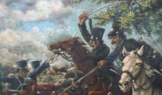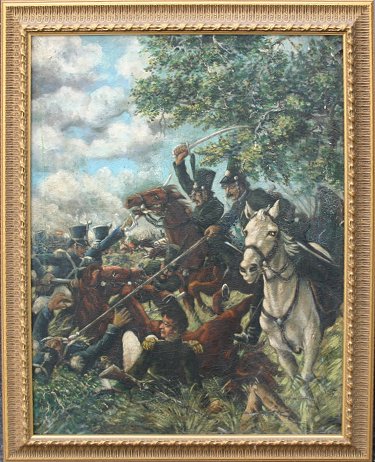 19TH C. ITALIAN? O/C OF MILITARY SKIRMISH: 34'' x 27'', no visible signature, contemporary frame, 39'' x 32''. Reportedly an 18th C. work, but there is no documentation to support this.