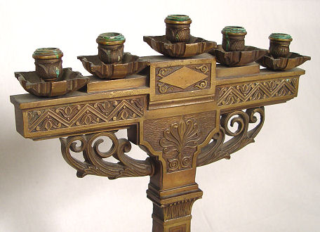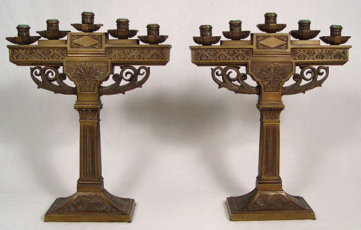 PAIR BRONZE CANDELABRA: 16 1/2'' w x 20 1/2'' h, 5 lights each.