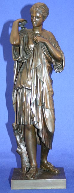 SAUVAGE, (French, 19/20th C.): Neoclassical Maiden in Draped Garment, Bronze, 16'' h., impressed ''Reduction Sauvage 1865'', also 13307 verso. Est. $800/1000**
