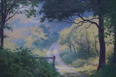 HEBERER, Charles, (American, 1868-1951): Allison Park, Pennsylvania, Near Pittsburgh, O/C, 21'' x 25'', carved and gilded impressionist frame with wear, 24 1/2'' x 28 1/2'', written verso on the stretcher, ''Painted by Charles Heberer, Allison Park, Pennsylvania, Near Pittsburgh. Former property of the artist's granddaughter.