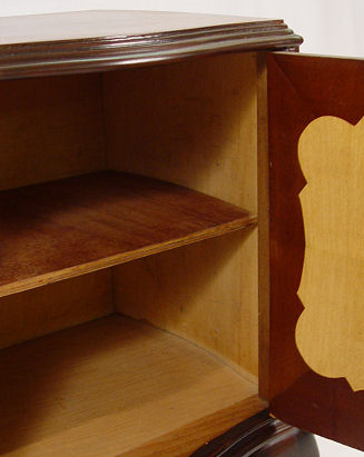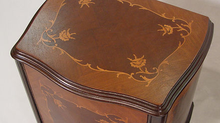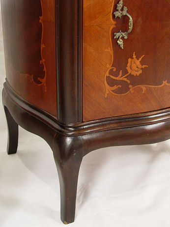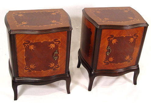 PAIR OF FRENCH LOUIS XV STYLE MARQUETRY INLAY STANDS: Bed side stand, one door, 24 1/2''h. x 17''w.