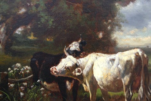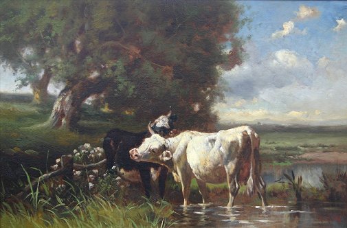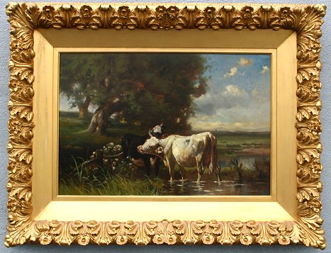 FOX, Robert Atkinson, (American, 1860-1935 ): Cows in a Stream, O/C, 16'' x 24'', signed lower right, regilded heavy period frame, 26 1/2'' x 34 1/2''.