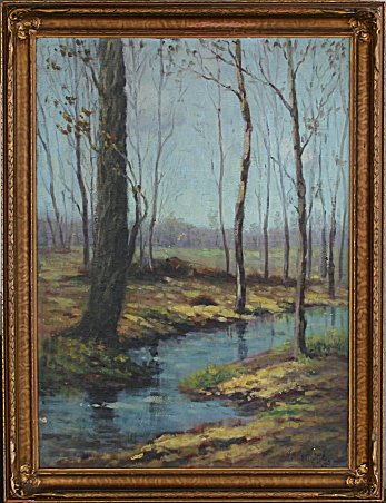 CHAMBERLAIN, Arthur B., (American, 19/20th C.): Landscape with Trees, O/C, 30'' x 22'', signed LR, period frame with wear and missing gesso, 34 1/2'' x 26 1/2''. Est. $500/700**