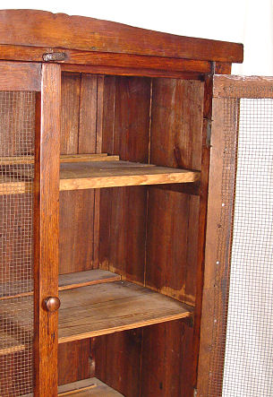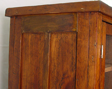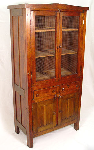 19TH C PINE AMERICAN COUNTRY PIE SAFE CUPBOARD: Upper mesh doors, central drawers, lower cabinet doors. Wide panel board back. 67 1/2''h. x 33'' x 19''.