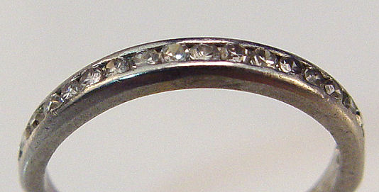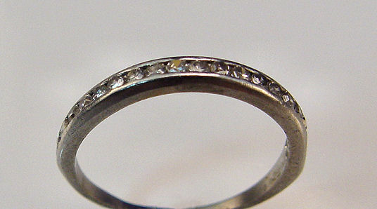 PLATINUM DIAMOND BAND: Delicate little band set with 19 single cut diamonds, approx. 1/5ctw, size 5.25, 1.7 grams. Est. $200/300**