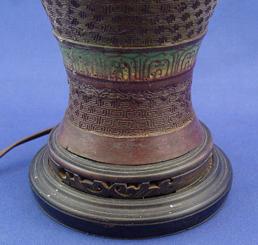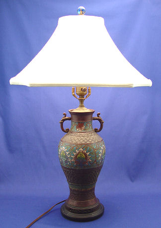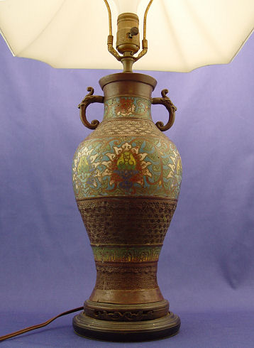 CHINESE CHAMPLEVE TABLE LAMP: Vase mounted as a lamp 12''h, the lamp is 24''h overall.
