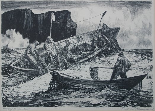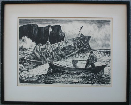 VON NEUMANN, Robert, (American, 188-1976): ''Fishing off the Maine Coast'', Lithograph, sheet size 13'' x 17 1/2'', signed LR, titled LL, black frame.