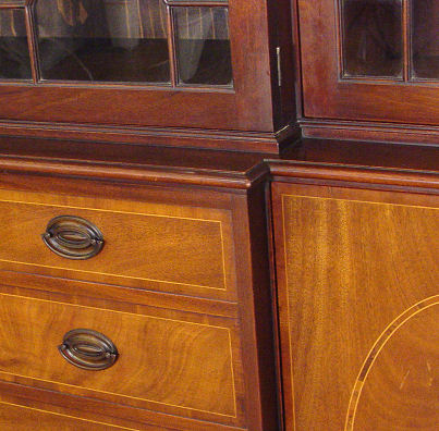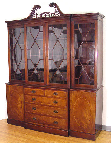 1948 RCA ''THE BERKSHIRE'' BREAKFRONT PROJECTION TV CABINET: Developed by RCA, made by Baker, it housed AM, FM, phonograph, and a projection television. The electronics have been removed from this cabinet and a faux drawer front replaces them....... Hazeltine Corporation Mahogany cabinet made for an RCA Victor Festival Series #1026, Model Berkshire Range entertainment center. Provenance indicates that this cabinet once belonged to Joseph Roessler, a prominent Cincinnati businessman in the 40's, is 1 of only 1000 ever made. Consignor Provenance states: ''This item was purchased around 1947-1948 from the Hazeltine Corporation, and was originally used as an entertainment center, having had a 25'' projection television, a 78RPM record player, and a high band radio. It was a RCA Victor Series #1026, Festival Series, Model Berkshire Range. I spoke with a curator of RCA history, located I believe in Princeton (and I think associated with the University), and he told me that this was the ''top,top, top of the line'',