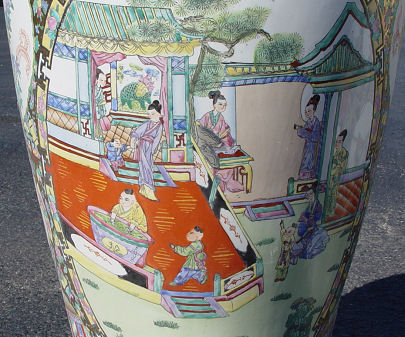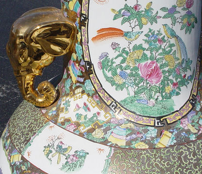 PR PALATIAL CHINESE DECORATIVE FLOOR VASES: Rose medallion coloration with gilt elephant head handles. 41''h.