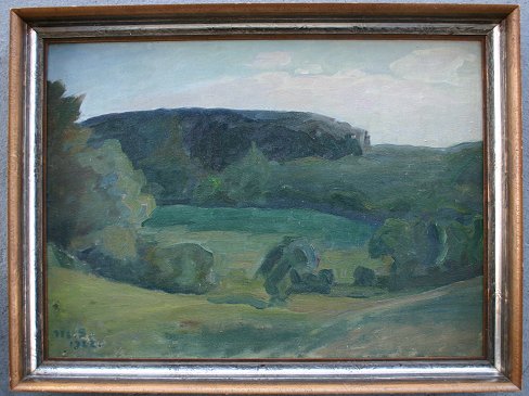 MODERNIST O/C LANDSCAPE PAINTING: 17'' x 23 1/2'', monogrammed LL, dated '22, framed, 19 3/4'' x 26''.