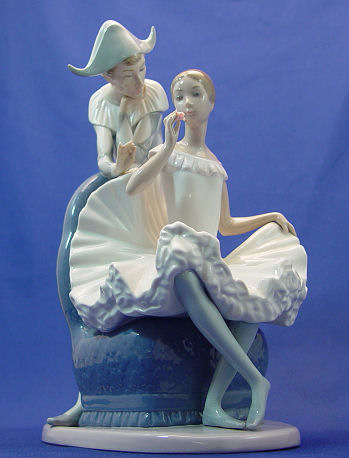 LLADRO NAO HARLEQUIN AND BALLERINA: Porcelain figural group, 12 1/2''h.
