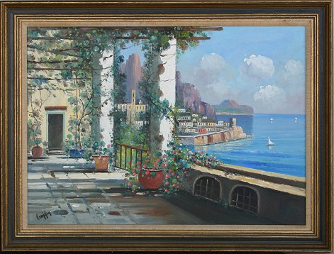 CIAPPA, (Italian, 20th C.): Italian Coastal View, O/C, 19 3/4'' x 27 3/4'', signed LL, gold frame 25'' x 32''.