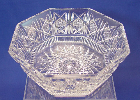 SIGNED HAWKES AMERICAN BRILLIANT CUT GLASS BOWL: Octagonal sided, 7 3/4''