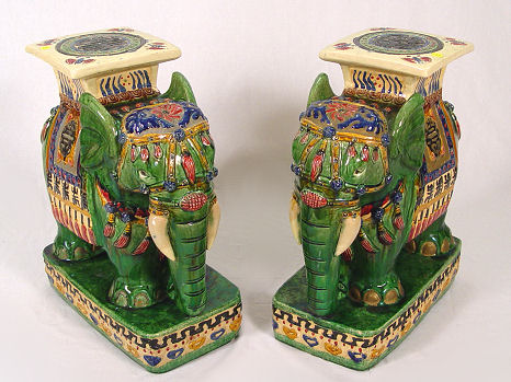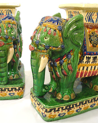 PAIR of CHINESE EARTHENWARE GARDEN SEATS: Elephant motif with polychrome majolica glaze, 26 1/2'' h.