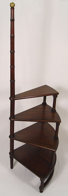 KITTINGER LIBRARY STEP TABLE T726: Bamboo turnings, brass finial at top. Paper label and branded Kittinger. 59 1/4''h.
