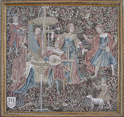 LARGE FRAMED FRENCH TAPESTRY: In gilt wood frame, 53 3/4'' x 56''.