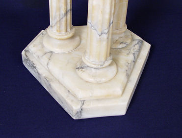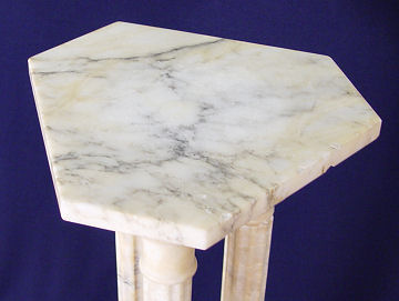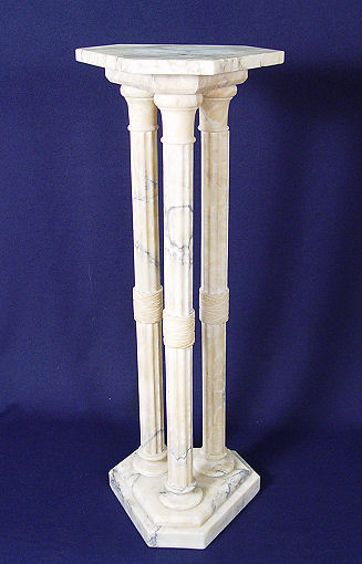 TRIPLE COLUMN MARBLE PEDESTAL: Triangular top, 35 1/2''h. 12'' dia.