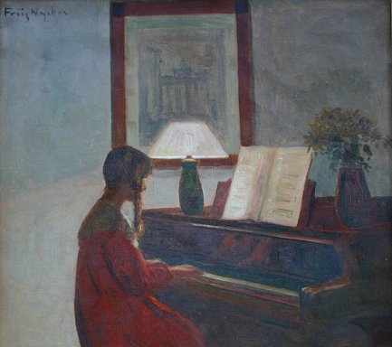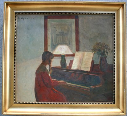 NYBO, Friis, (Danish, 1829-1929): At the Piano, O/C, 17 1/2'' x 19'', signed upper left, gilt frame with wear, 20 1/2'' x 22''.