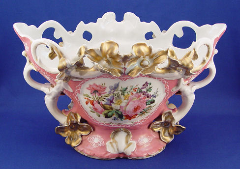 19th C OLD PARIS CENTER PIECE FERNER: Hand painted floral design, 10 3/4''h. x 17'' x 10''.