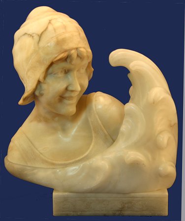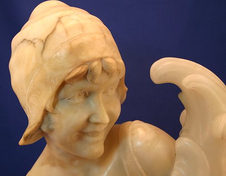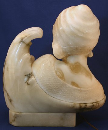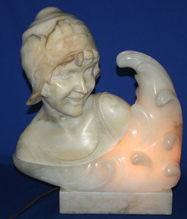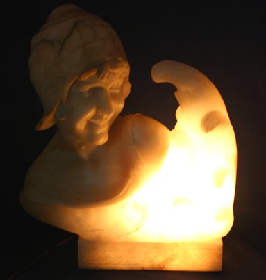 ART NOUVEAU CARVED ALABASTER LAMP: 16'' h X 14''. Made in Italy.