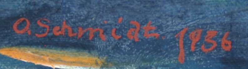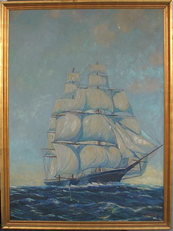 SCHMIDT, A.,(European, 20th C.): Clipper Ship, O/C, 52'' x 39'', signed LR, worn gilt frame, 56'' x 43''.