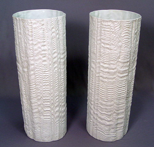 PAIR OF ROSENTHAL STUDIO LINE VASES DESIGNED BY MARTIN FREYER: 26'' tall, all white. Martin Freyer is most remembered for designing the Volkswagen VW emblem.