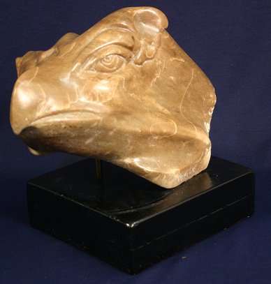 ROBERT PLUTCHIK MARBLE EAGLE SCULPTURE: Marble, 10'' h., signed.