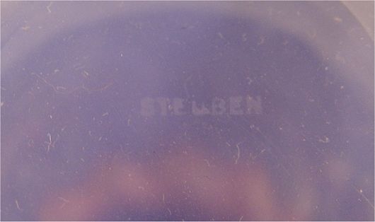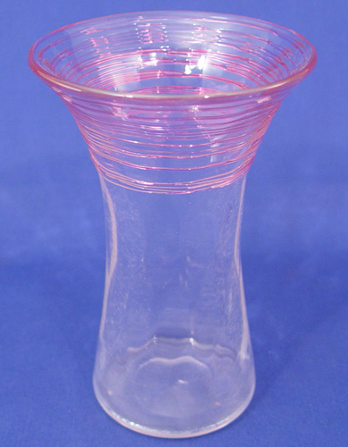 STEUBEN THREADED ART GLASS VASE: Red threads, signed in block letters, 6''h.