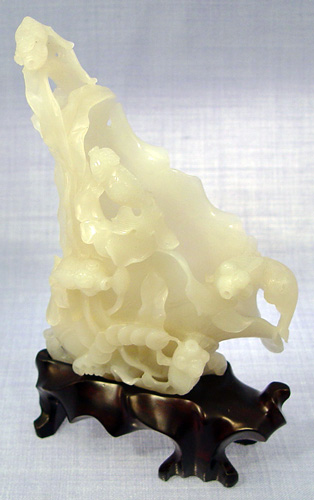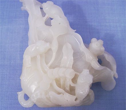 CHINESE CARVED WHITE JADE WATER GROUP: Showing fish and sea vegetation. The jade itself is 7 1/2''h.