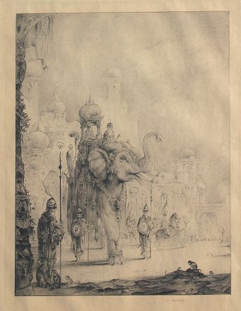 DETMOLD, Edward Julius, (British, 1883-1957): Orientalist Parade Scene, Etching, 17'' x 13 1/4'' sight size, pencil signed, chrome frame with wear, 24'' x 19''.